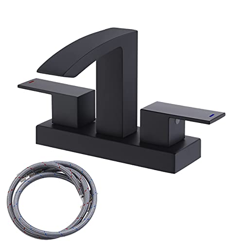 Amazon Crazy 🔥 Deals KES Bathroom Sink Faucet Matte Black Two Handle Faucet 4 Inch Centerset Waterfall Modern Style Vanity cUPC NSF Certified, L4101LF-BK
